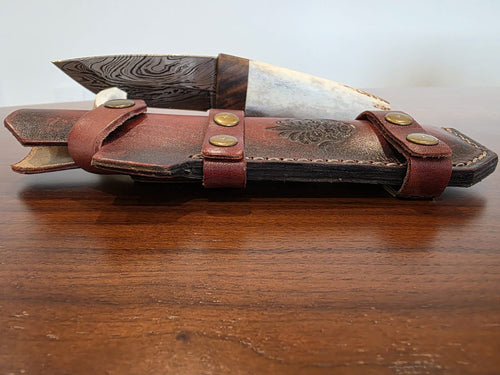 Neck Knife aus Damaststahl, stabilisiertem Ahorn Griff gefärbt inkl. Kydex -