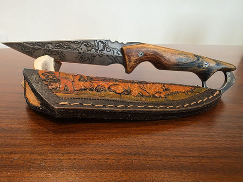 Messer mit Walnuss Griff, Carbonstahl inkl. Lederetui -